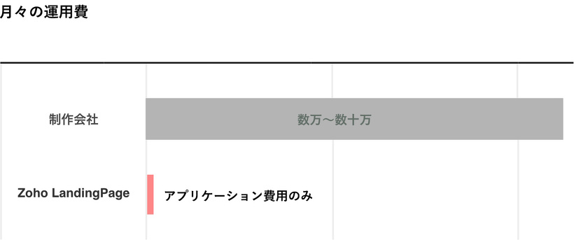 ページのパフォーマンスを確認できるレポートから、問い合わせ率が低いのか、そもそも訪問者が足りていないのかなど改善点を確認して、すぐに改善策をページに反映することができます。さらに、制作会社に運用費を払う必要もないため、LPを作った後の月々の費用も抑えられます。