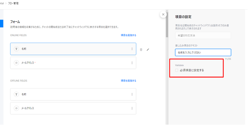 オペレーターとのチャット開始時に訪問者に入力いただきたい項目をフォームとして設定することができます。