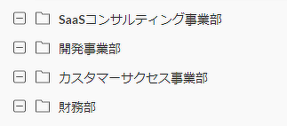 例)部署名、営業関連、財務関連、マーケティング関連等