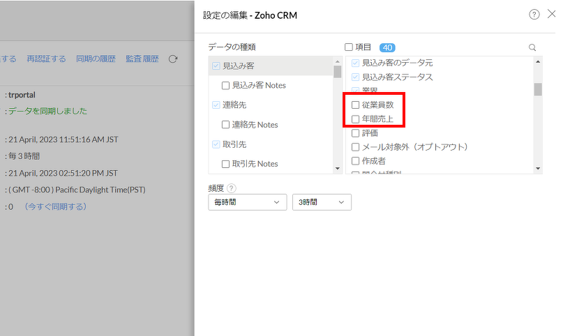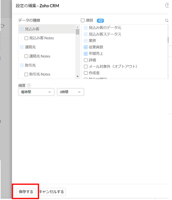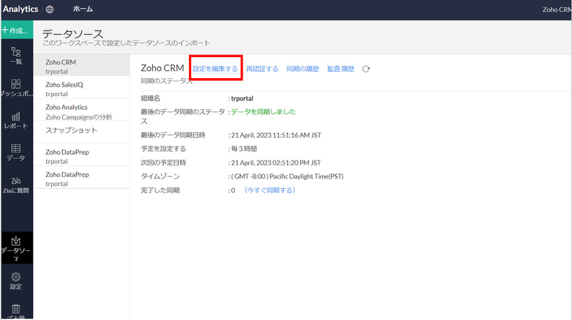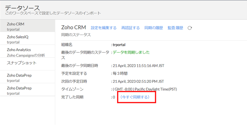 Zoho Analyticsにて、Zoho CRM同期設定を行い、