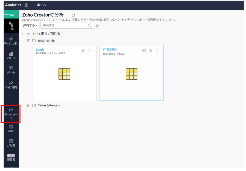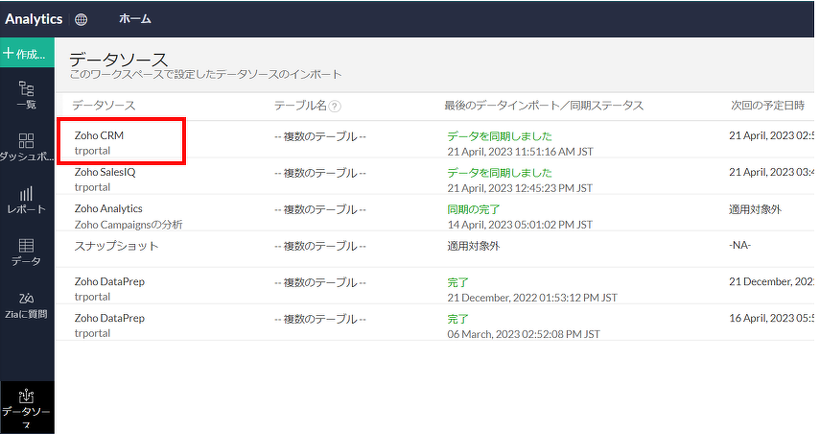 Zoho CRMの各タブのデータをZoho Analyticsにインポートしたはずなのに、