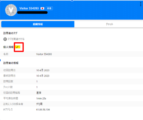 手順3:該当の見込み客詳細の「個人情報」の右にある鉛筆マークを押す