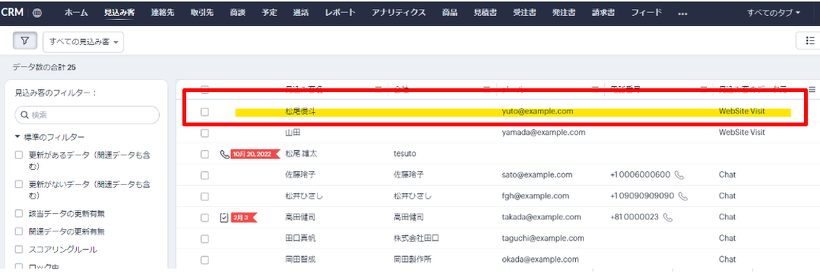手順6:Zoho CRMの見込み客タブ/連絡先タブ(※)を確認し、