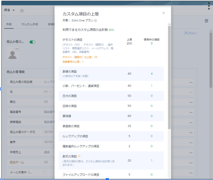 Zoho CRM カスタム項目の上限数を確認しよう!