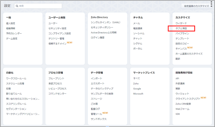 【Zoho CRM】「カスタム項目の上限数」の確認方法
