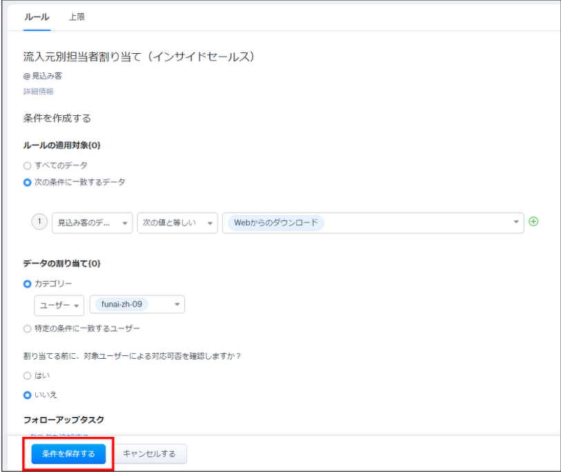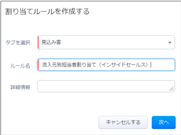 ※今回は、タブ:見込み客・ルール名:流入元別担当者割り当て(インサイドセールス)とします。