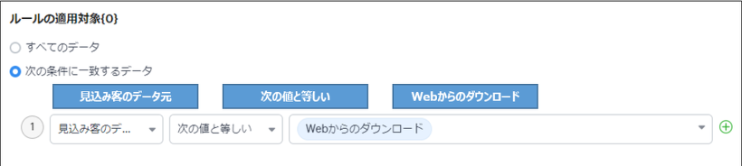 ※今回は、「見込み客のデータ元」が「次の値と等しい」「Webからのダウンロード」とします。