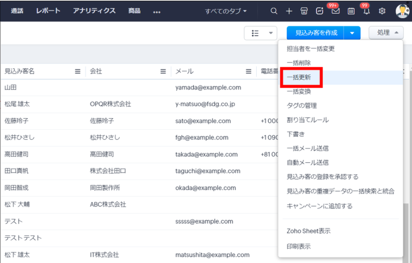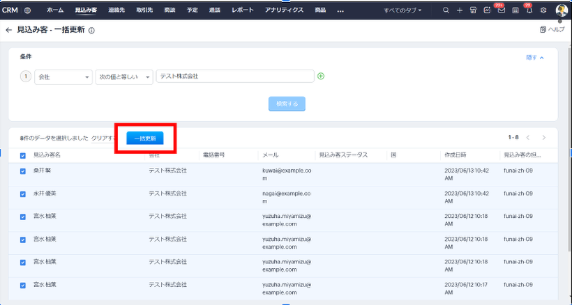 Zoho CRMの一括更新機能をもちいることで、複数レコードの項目に同じ値を一括で更新することができます。