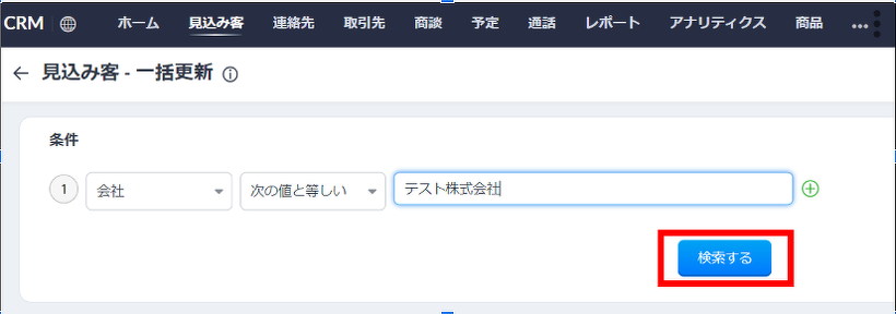 ※今回は、該当企業所属の見込み客のWebサイト項目を一括更新するため、下記画像のような条件とします