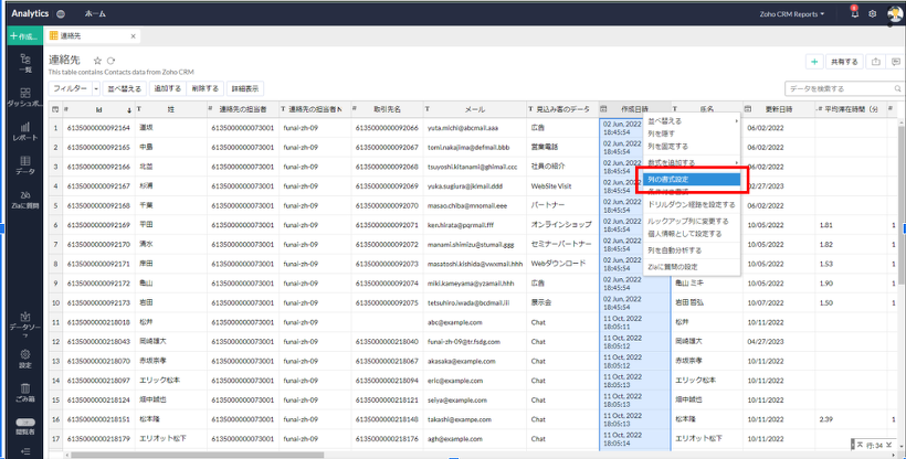 Zoho Analytics テーブルで列の書式を変更しよう!