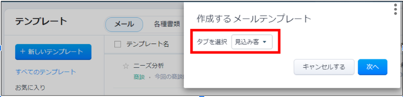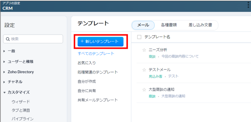 【手順2】「新しいテンプレート」を押し、テンプレートを新規作成