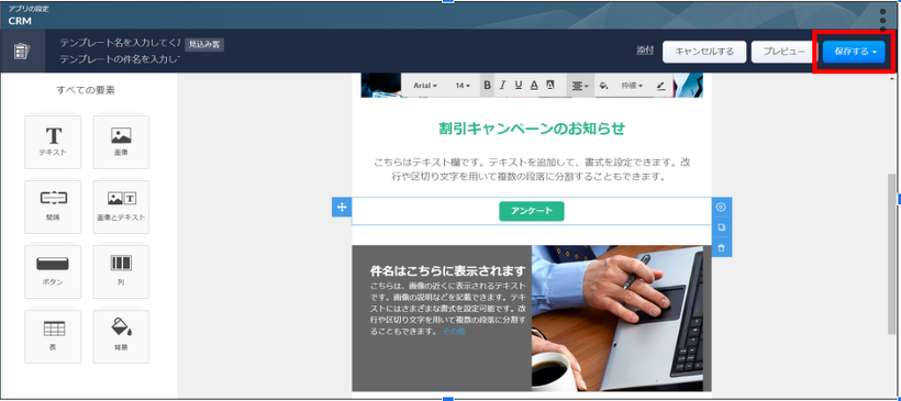Zoho Surveyにて指定したパラメーター付きのアンケートURLをZoho CRMのメールテンプレートに差し込み、