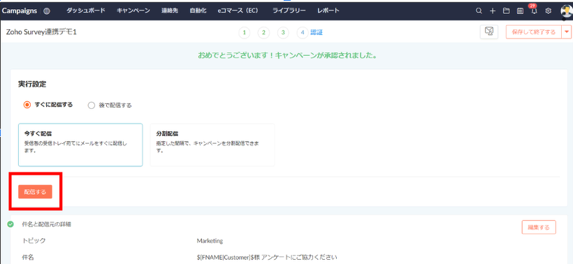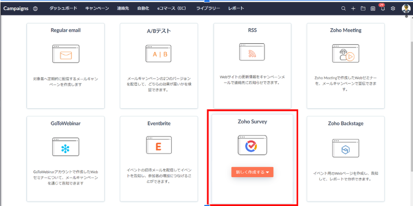 【手順1】Zoho Surveyのキャンペーンを作成し、本文の作成をする