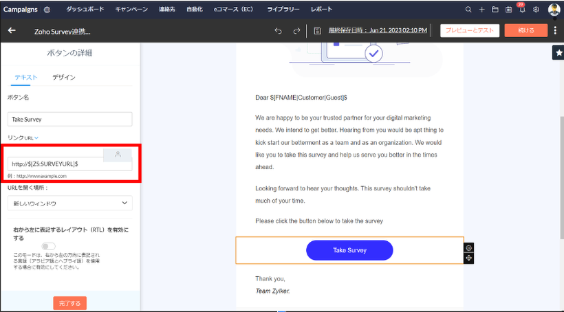 Zoho Campaigns メールテンプレートを活用し、パラメーター付きリンクを配信