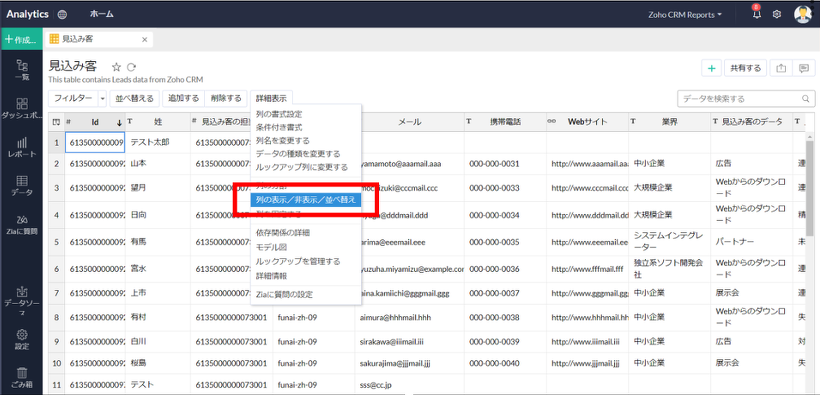 Zoho Analytics テーブルの列を必要に応じて、並べ替え・非表示にしよう!
