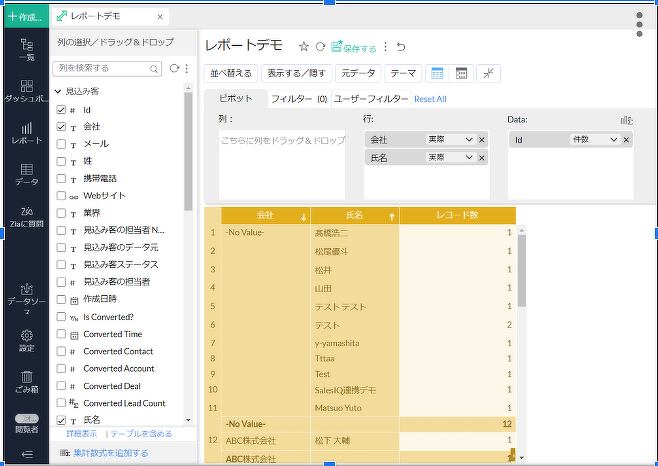 Zoho Analyticsのレポートを作成した際に、下記画像のように‐No Value‐となった行が出てしまい、