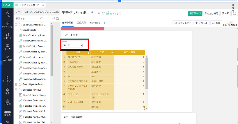 【Zoho Analytics】ダッシュボード上に特定のレポートのユーザーフィルターを表示させる方法