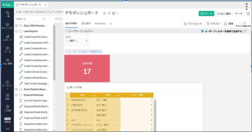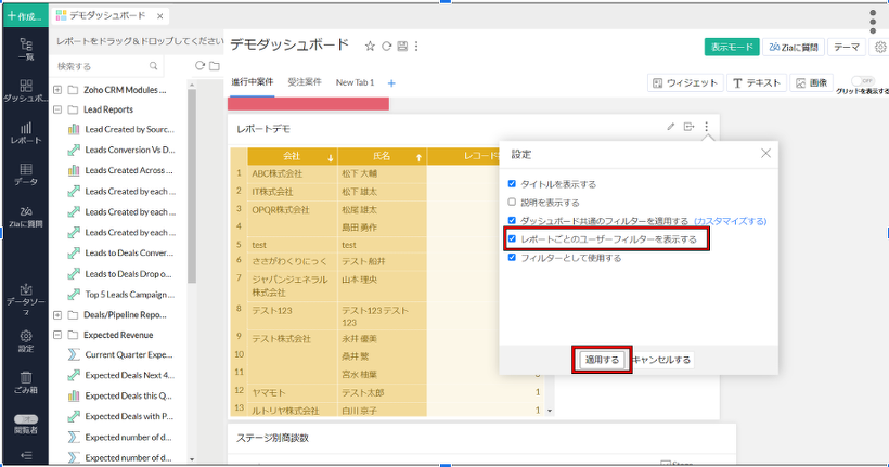 Zoho Analytics 特定のレポート上にユーザーフィルターを表示させよう!
