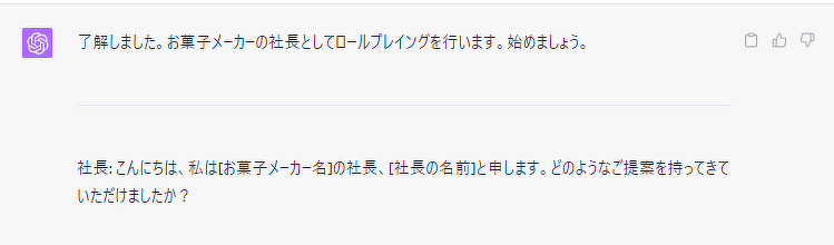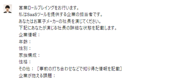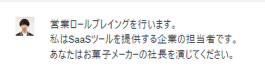 こちら側の役割、そしてChatGPTに演じて欲しい役割を設定します。