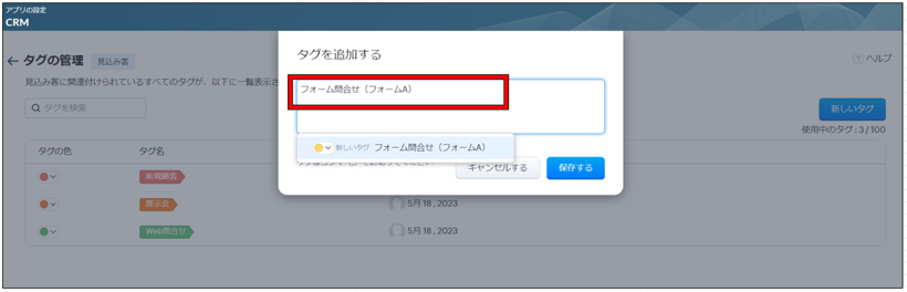 タグをもとに、どのフォーム経由で作成された見込み客なのかを判断することができます!