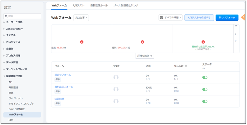 Zoho CRM Webフォームには、回答者をZoho CRMに見込み客として登録する際に、
