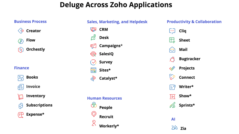 DelugeはZoho独自のスクリプト言語で比較的簡単にコードを書くことができる言語です。